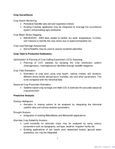• Estimation of crop yield using crop health, various indices, soil moisture,
