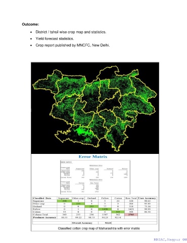 Outcome: • District / tahsil wise crop map and statistics. • Yield forecast statistics. • Crop report published by MNCFC, New Delhi. 3 MRSAC,Nagpur ©® MRSAC,Nagpur ©®