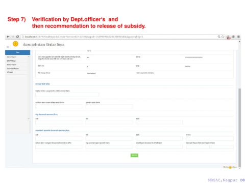 Step 7) Verification by Dept.officer’s and then recommendation to release of subsidy. MRSAC,Nagpur ©® MRSAC,Nagpur ©®