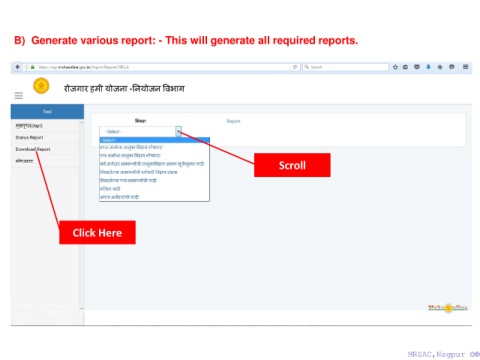 B) Generate various report: - This will generate all required reports. Scroll Click Here MRSAC,Nagpur ©® MRSAC,Nagpur ©®