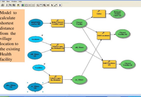 Model to calculate shortest distance from the village location to the existing Health facility