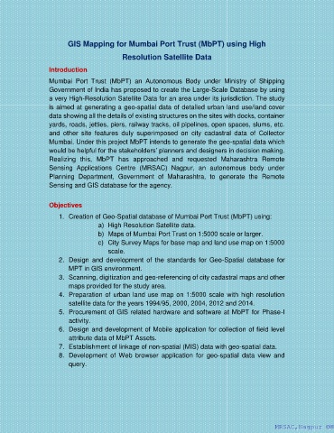 1. Creation of Geo-Spatial database of Mumbai Port Trust (MbPT) using: