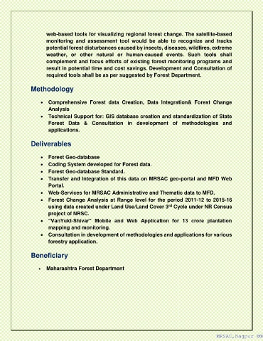 • Transfer and Integration of this data on MRSAC geo-portal and MFD Web