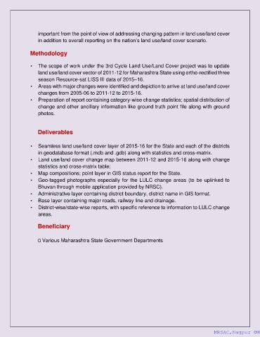 • District-wise/state-wise reports, with specific reference to information to LULC change