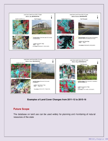 Examples of Land Cover Changes from 2011-12 to 2015-16 Future Scope The database on land use can be used widely for planning and monitoring of natural resources of the state MRSAC,Nagpur ©® MRSAC,Nagpur ©®
