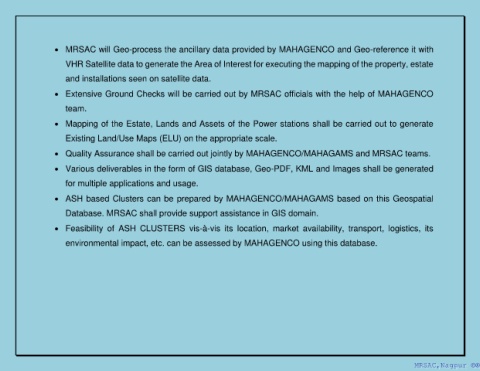 • MRSAC will Geo-process the ancillary data provided by MAHAGENCO and Geo-reference it with