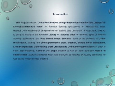 THE Project involves “Ortho-Rectification of High-Resolution Satellite Data (Stereo/Tri-