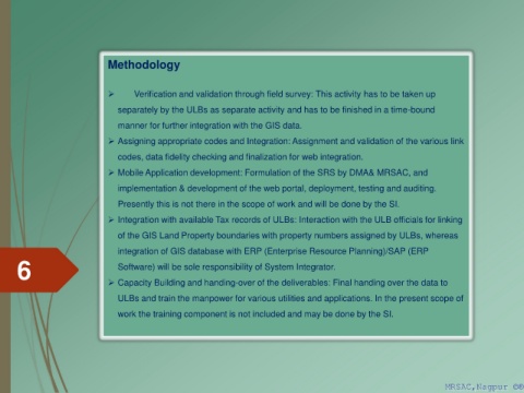 ULBs and train the manpower for various utilities and applications. In the present scope of